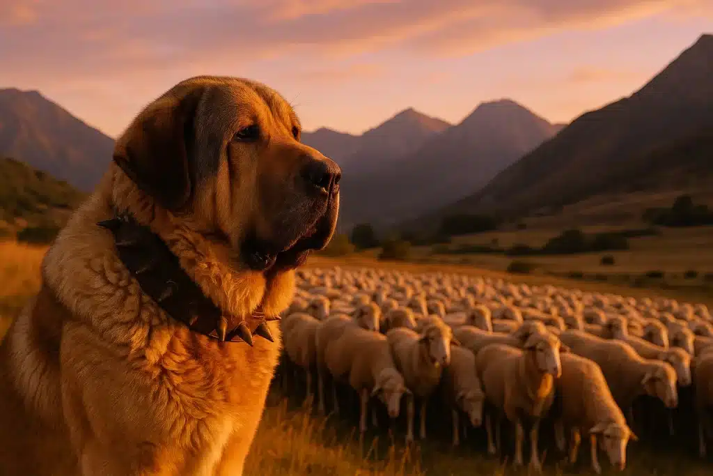 Durante siglos ha acompañado a los rebaños por las Cañadas Reales, marcando distancia con el ganado, vigilando colas y flancos y disuadiendo depredadores. Ese rol explica su físico, su resistencia y su carácter estable. La carlanca (collar de puntas) formaba parte de su equipamiento en zonas loberas, reforzando el cuello frente a mordidas.