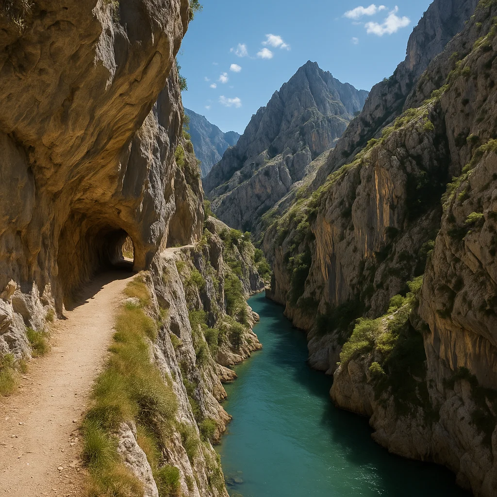 La Ruta del Cares es probablemente el sendero más famoso de la Cordillera Cantábrica. La parte leonesa arranca en el pequeño pueblo de Caín, en pleno corazón de los Picos de Europa, y discurre encajada entre paredes verticales que cortan la respiración.