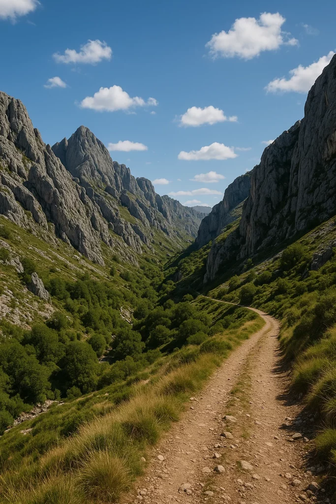 Aunque no es una ruta de alta cumbre, el desfiladero de las Hoces de Vegacervera ofrece uno de los paisajes de montaña más singulares de León. La carretera que lo atraviesa discurre encajada entre paredes de roca caliza que se elevan sobre el río Torío, y desde ella parten varios senderos sencillos pero muy vistosos.